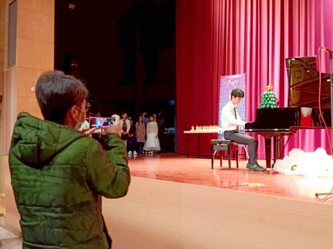 站在台上俯瞰,演藝廳裡最美的風景其實不是舞台,而是台下家長們的眼神。